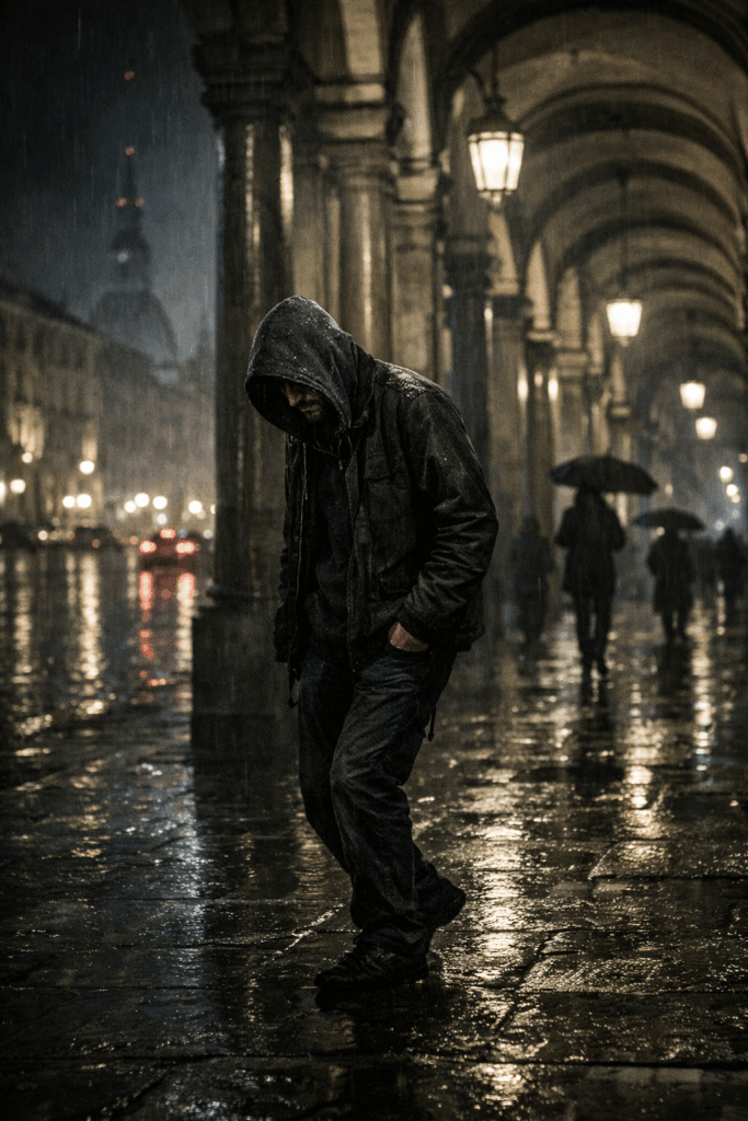 Carnival resta in piedi sotto i portici. Torino vibra appena, come se sotto le pietre ci fosse qualcosa che respira male da molto tempo e…