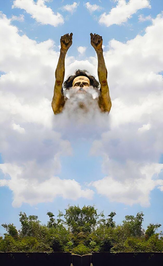 Poco più in alto, ribolliva un nucleo brumoso di nubi primordiali, oltre al quale s’ergeva il torso enorme e spettrale di uno sciamano dalle scarne braccia rivolte al cielo.
