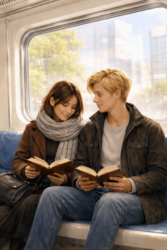 Il cuore batte frenetico mentre il treno si ferma sulla banchina, in attesa dei passeggeri. Le persone si affollano sulle porte automatiche, mi sento spingere, ma mantengo la calma. Alzo il volume della musica nei miei auricolari, così da non sentire il nervosismo che mi circonda. Salgo e vado verso il fondo del vagone, dove so che troverò un unico posto vuoto, e, infatti, eccolo, accanto al ragazzo dai capelli biondi che mi osserva di sfuggita.