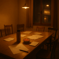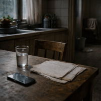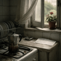 Il tavolo è pulito. Una tazza sbeccata, un quaderno a quadretti, una matita temperata male. Sessant’anni oggi. Fuori è freddo, ma la cucina tiene. Appoggio…