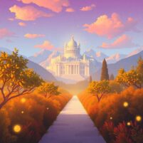 L’Olimpo si innalzava davanti a noi, come una scalinata di luce che terminava dinanzi al Giardino delle Albe. Oltre di esso svettava la cittadella divina.…
