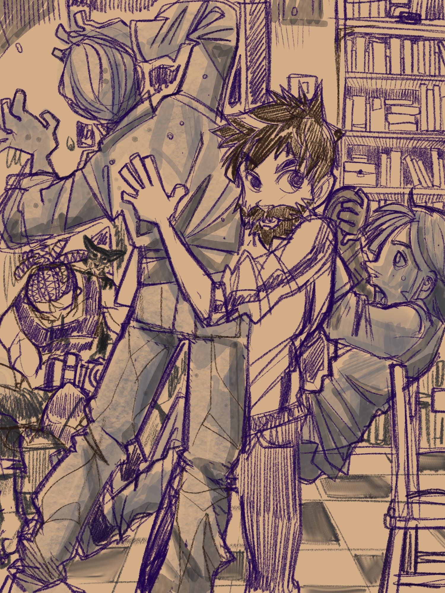 Davide, al centro della sala, stava posando i suoi genitori facendo molta attenzione. Poi posò la ciclope culturista, spostando la poltrona, che si era trasformata in giaciglio per streghe prive di sensi. Notò come il lemure le avesse già risanato la bocca, mentre adesso squittiva in direzione dello stregone. La magia di comprensione, usata anticamente dai diplomatici per stipulare accordi e patti con i re e i maghi di un’epoca remota, colorò l’intero salotto di un bel rosa vivace.
