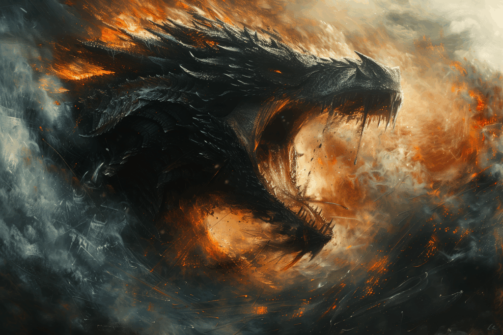 Il drago, cogliendo il suo movimento, deviò all’ultimo istante e con la coda gli diede una sferzata in faccia.