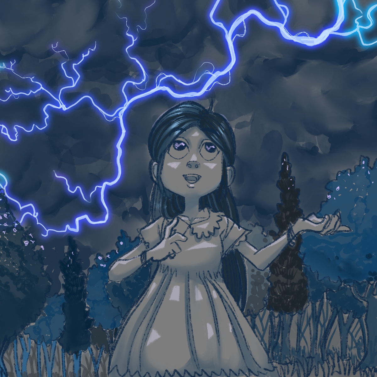 Un lampo di luce rese impossibile vedere qualsiasi cosa, un flash prolungato bianco e blu cancellò ogni ombra e annullò i colori. Il rumore fu quello di una bomba carta che esplodeva all’interno di una vasca vuota, poi un tonfo sordo e un lamento di dolore, le fecero capire che il nome strega delle tempeste era proprio calzante.